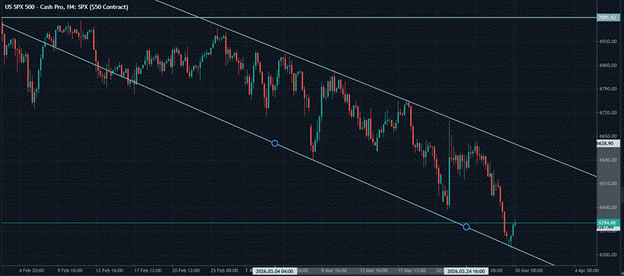The S&P 500 similarly shows a lower highs and lower lows pattern with a bounce from its recent lower bound. Both indices have retraced somewhat from their recent lows, but characterising that retracement as potentially temporary rather than structurally significant is appropriate given the absence of any confirmed diplomatic progress to underpin it.