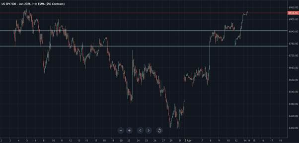 April 14, 2026 - Markets are broadly recovering from Monday’s blockade-driven losses. Reports that the US and Iran are weighing fresh negotiations to extend the ceasefire before it expires next week have stabilised sentiment. The S&P 500 is back above 6,900. JPMorgan and Johnson and Johnson report today.